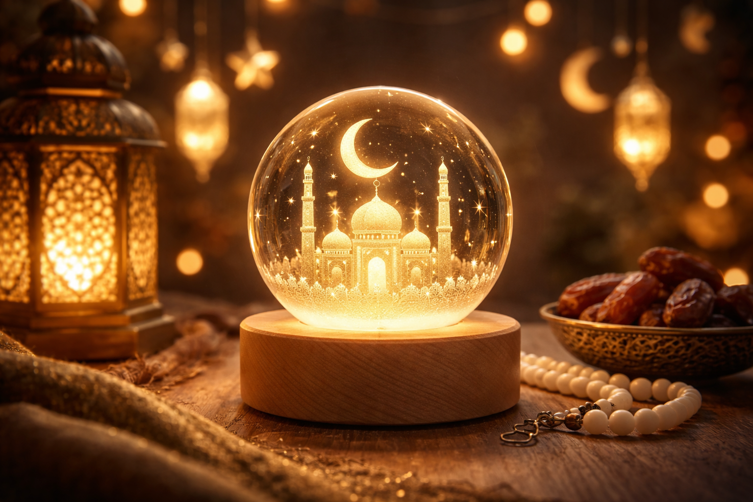 Ramadan 3D Crystal Ball Night Light – Mosque, Castle & Moon Islamic Decoration Ramadan Kareem Gift