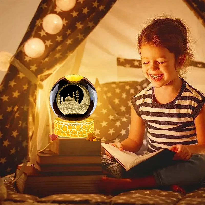 3D Crystal Ball Night Light – Mosque, Castle & Moon Ramadan Decoration Islamic Gift
